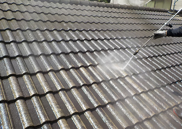 乾式洋瓦(モニエル・スカンジア等)は特に注意が必要で、着色セメント層(スラリー層)は大気中の二酸化炭素が侵入し中性化が進むと脆弱化・粉状になり、塗膜の密着を妨げる原因になります。この層が残ったまま上塗り塗装をすると、どんなに高性能な塗料を使っても、数年で塗膜が層ごと剥がれ落ちるという致命的な施工不良に繋がります。そのため乾式洋瓦の塗装においては、下地処理の高圧洗浄で脆弱なスラリー層をしっかりと除去することが必須となり、さらに残ったスラリー層ごと固めることができる下塗り材の選定が必要です。